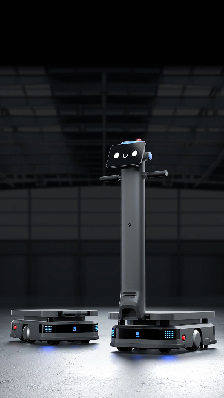 The PUDU T600 is a heavy-payload industrial delivery robot designed for moving large payloads. Centered around a robust mobile chassis, it features a touch screen and handle for user-friendly operation. Features: Equipped with a built-in screen, it can be operated directly without a central control system. Includes a power-assist switch, quick-access buttons, and front indicator lights for easy and efficient use.